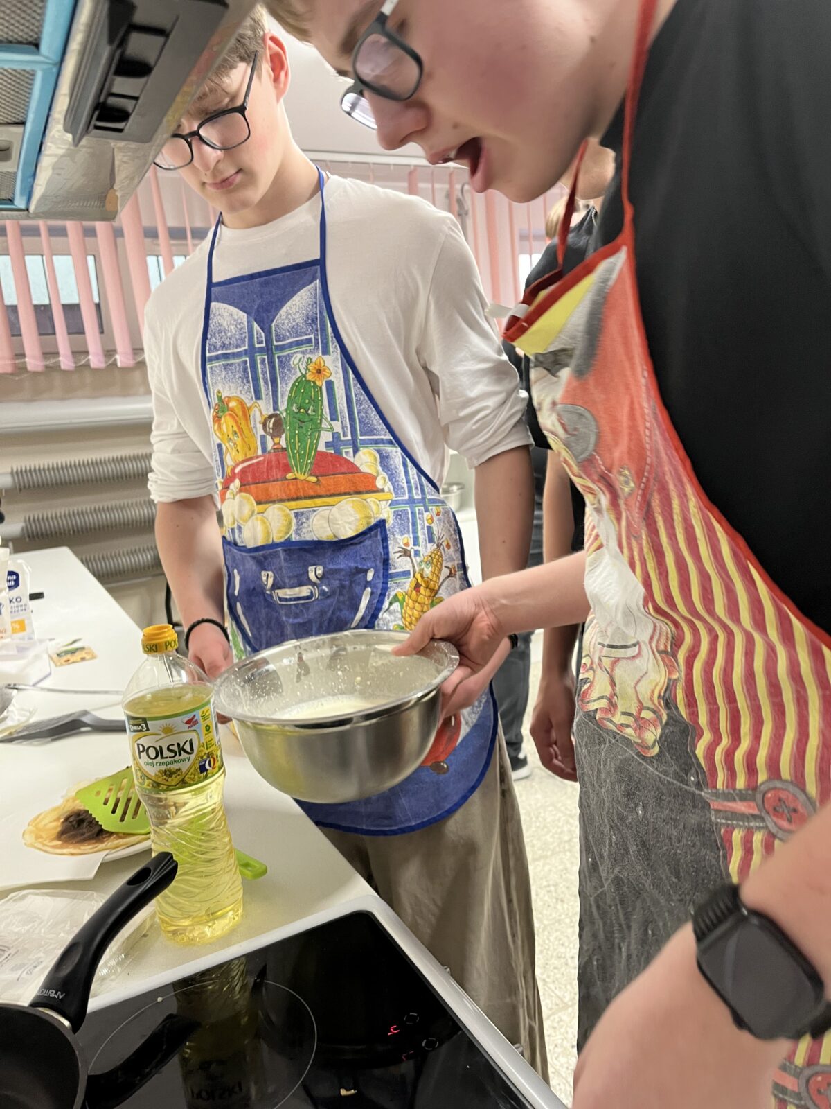 Uczniowie klasy 3PB/3PC udowodnili, że nauka języka angielskiego może być pyszna i bardzo praktyczna. Podczas ostatnich zajęć uczniowie przygotowali autorskie przepisy na naleśniki w języku angielskim, a następnie przeszli od teorii do praktyki, „wielką brytyjską tradycję” przenosząc prosto na talerze.