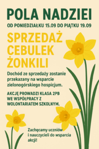 II Ogólnokształcące Liceum Ekologiczne z Oddziałami Integracyjnymi w Zielonej Górze Final akcji POLA NADZIEI 🌼🌼🌼 Serdecznie dziękujemy wszystkim, którzy wzięli udział w akcji „Pola Nadziei”,