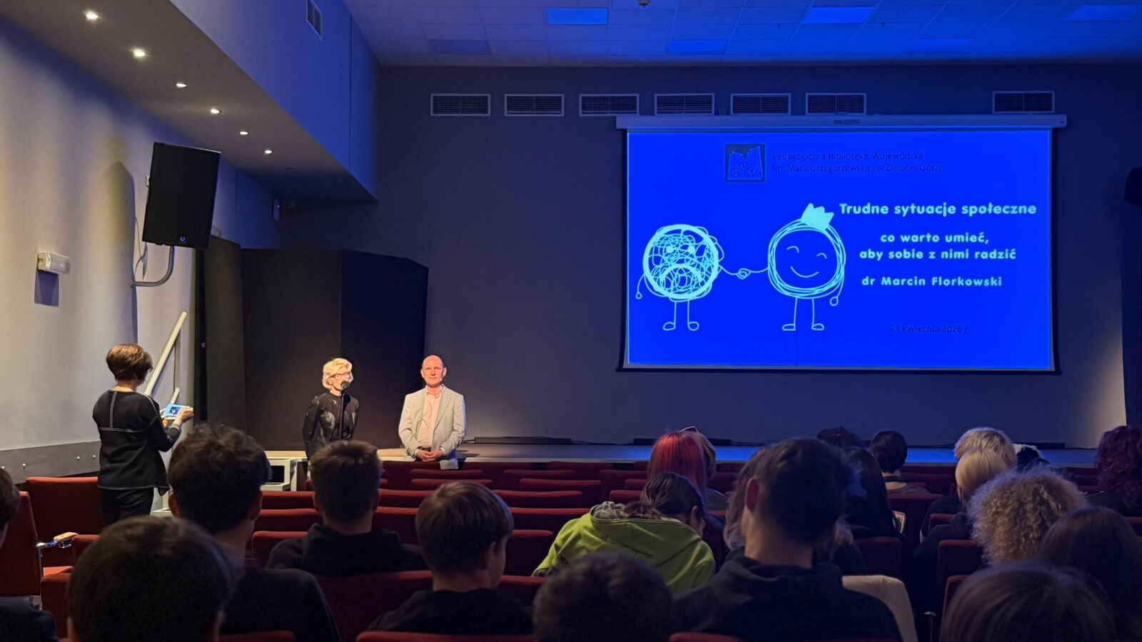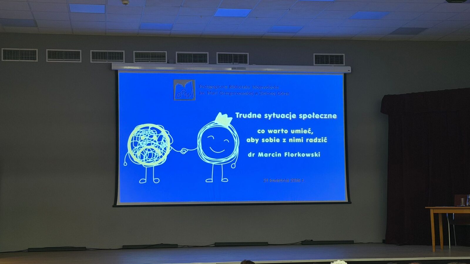 W dniu 21.04.2026 klasa 3PA uczestniczyła w wykładzie/warsztatach pt. „Trudne sytuacje społeczne: co warto umieć, aby sobie z nimi radzić”, prowadzonych przez dr Marcina Florkowskiego w Pedagogicznej Bibliotece Wojewódzkiej w Zielonej Górze.