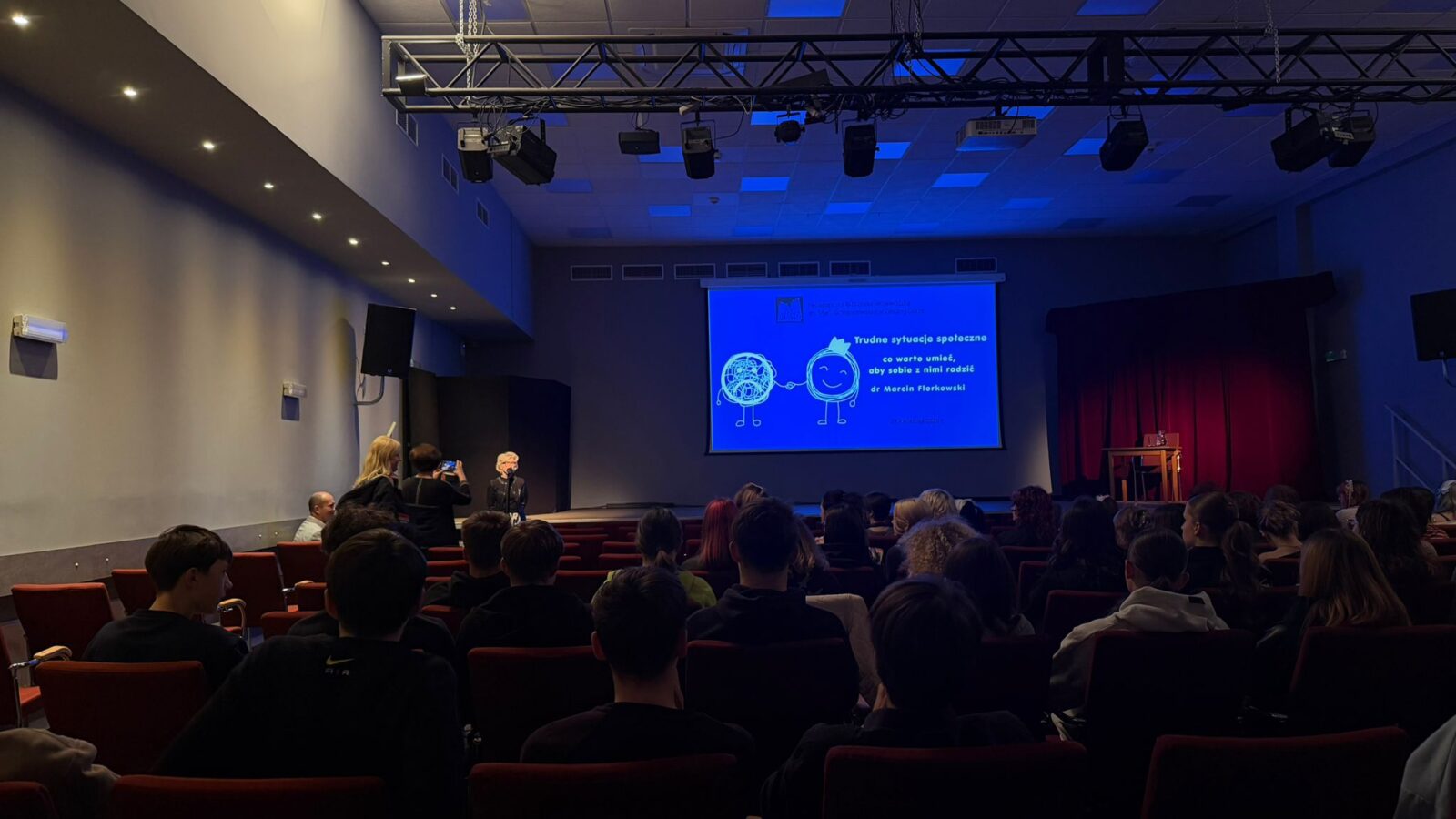 Prowadzący zaprezentował również praktyczne sposoby radzenia sobie w trudnych sytuacjach, zachęcając uczniów do refleksji nad własnymi reakcjami i zachowaniami. Spotkanie miało charakter interaktywny – uczniowie brali udział w dyskusjach.